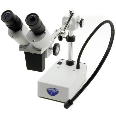 Microscopio stereo a 1 ingrandimenti fisso (20x) - Base a sbalzo - Illumizione LED su braccio flessibile - Testata fissa ruotata frontalmente