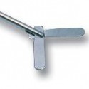 Asta di agitazione con pala basculante. La pala che si allinea automaticamente durante la rotazione, genera un flusso assiale nel recipiente dall'alto verso il basso. Particolarmente indicata per l'agitazione in contenitori a collo stretto. Impiego: Utilizzo a velocità medio alte per turbinare solidi leggeri, per flocculazioni, miscelare agenti addensanti, agitare fanghi, ecc.