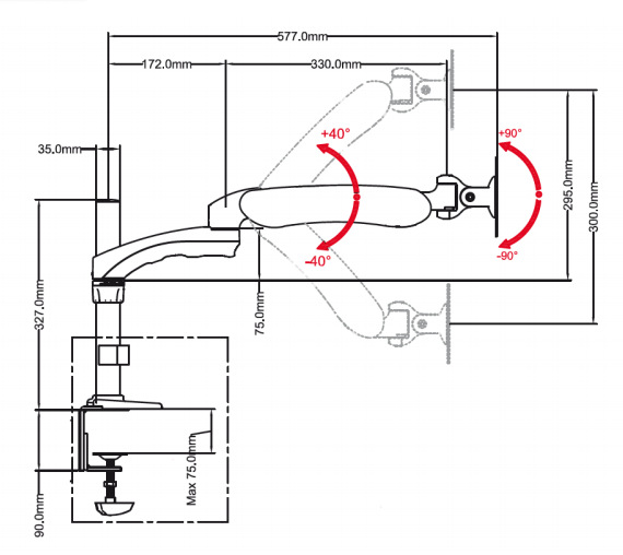 Distanza dell’asta (chiusa): 75mm
