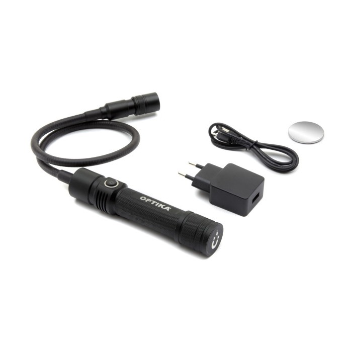 Illuminatore a braccio con piastra magnetica di fissaggio, alimentato tramite USB Sorgente luminosa: LED da 2W ad alta efficienza Temperatura colore: bianco puro 6300 K Flusso luminoso: 200 lm Illuminamento: 20.000 (su 5 cm di diametro).