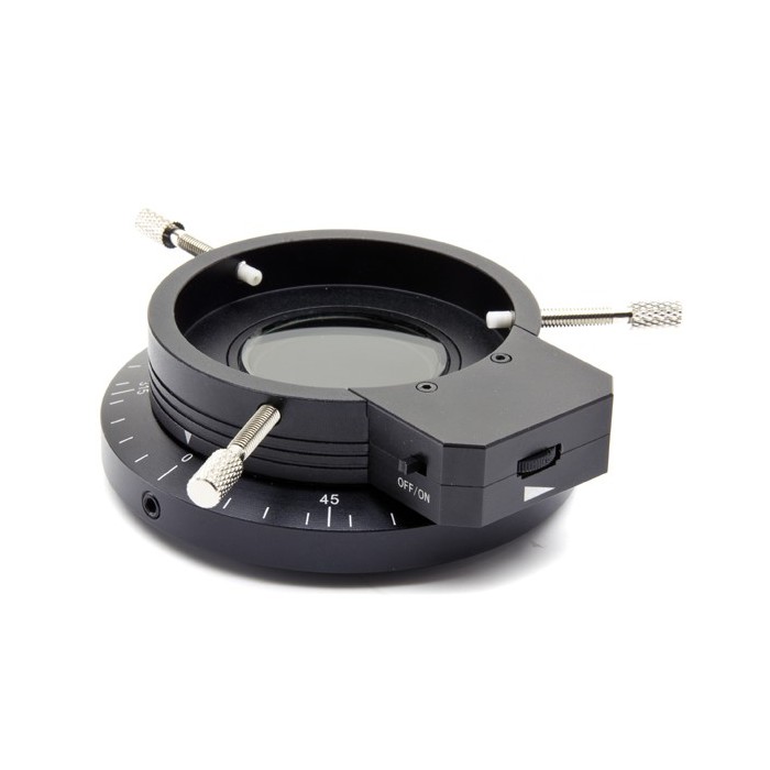 L'illuminatore ad anello LED polarizzante CL-18 è generalmente richiesto per ridurre l'abbagliamento sui campioni metallici, è dotato di un analizzatore posto al centro dell'anello luminoso e di un polarizzatore rotante che può essere polarizzato in modo incrociato. Ruotando il polarizzatore a diverse angolazioni, i riflessi e gli abbagliamenti vengono ridotti. CL-18 è fortemente raccomandato per l'ispezione di circuiti stampati, oggetti metallici e parti metalliche che potrebbero produrre molti riflessi, nascondendo dettagli preziosi del campione.